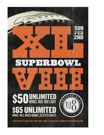 Butterfield 8 in Midtown East is a well-know football bar, so naturally it's a great spot for the upcoming Broncos vs Seahawks throw down. However, keep in mind it's definitely a spot for Broncos fans. If you wear Bronco's gear you get half off snacks!