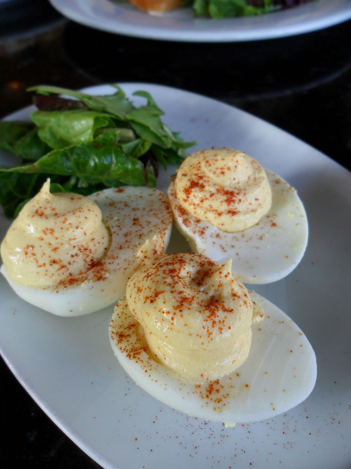We devoured a grilled chicken and goat cheese mini pizza, sliders, a caesar salad, and deviled eggs. Didn't I just have deviled eggs at Pop? Yes. Must be a new happy hour trend. One that I am very okay with. Between bites, Cheyenne reveled in the re-telling of her "Dirty 30" weekend shenanigans (which she even received a battle wound for on her left knee thanks to alcohol plus the faux beach of the Monte Carlo). Then it was my turn to catch her up on my latest adventures with online dating. Specifically details from my "last night" with the boy with dragon tattoo...he literally has a dragon tattoo.