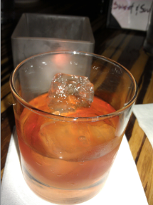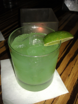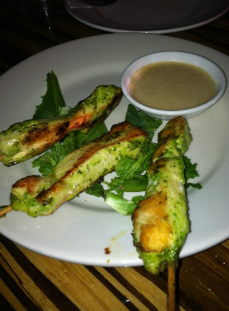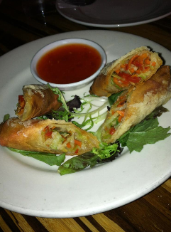 The happy hour food menu was hand-written with daily specials that shared an Asian theme: chicken satay, spring rolls, sesame wasabi fries and sweet and sour rib tips. We decided on the chicken satay and spring rolls. The satay came out with 2 grilled skewers; tender, yet simple on a sparsely dressed plate. Our vegetable spring rolls were fried and served with a sweet and sour dipping sauce. I thought they were a little oily, but again, they were fried. I had hoped for a little more flavor and pizzaz with the food, but perhaps the main menu promised better flavors? Meanwhile as we ate, I noticed a different server only a couple feet behind us listening over our conversation in the reflection of the nearby mirror - it was little distracting. Otherwise, our main server was very friendly and attentive.